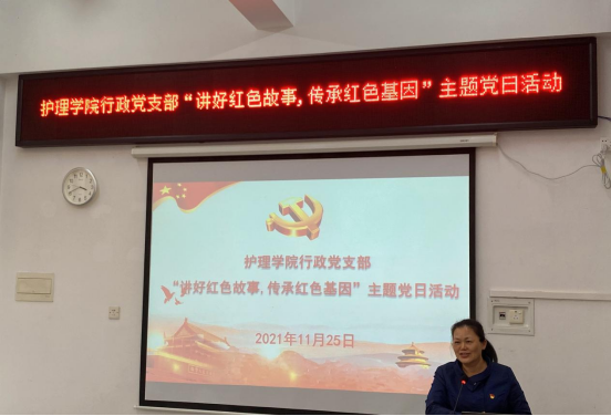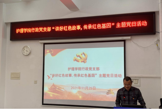 党的故事蕴含党的初心使命、彰显党的优良作风、展现党的奋斗精神。为赓续党的红色血脉,发扬党的优良作风,2021年11月25日下午,BB贝博艾弗森官方网站行政党支部在学院党员活动室开展“讲好红色故事, 传承红色基因”主题党日活动,全体支部党员参会,支部委员赵珊主持。