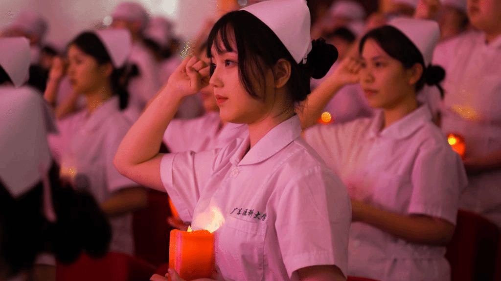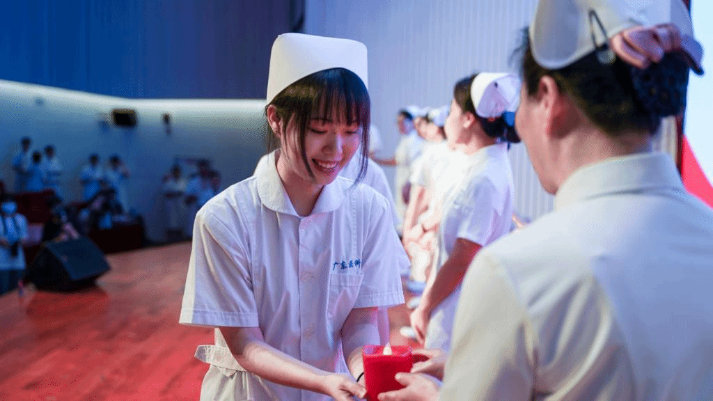 随着柔和的灯光与低缓轻柔的配乐,BB贝博艾弗森官方网站前辈们为护生带上象征着神圣洁白的燕尾帽,并为护生们传光。最后,BB贝博艾弗森官方网站刘琼玲院长带领在现场的2019级学生进行庄严宣誓。