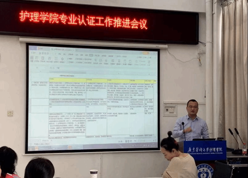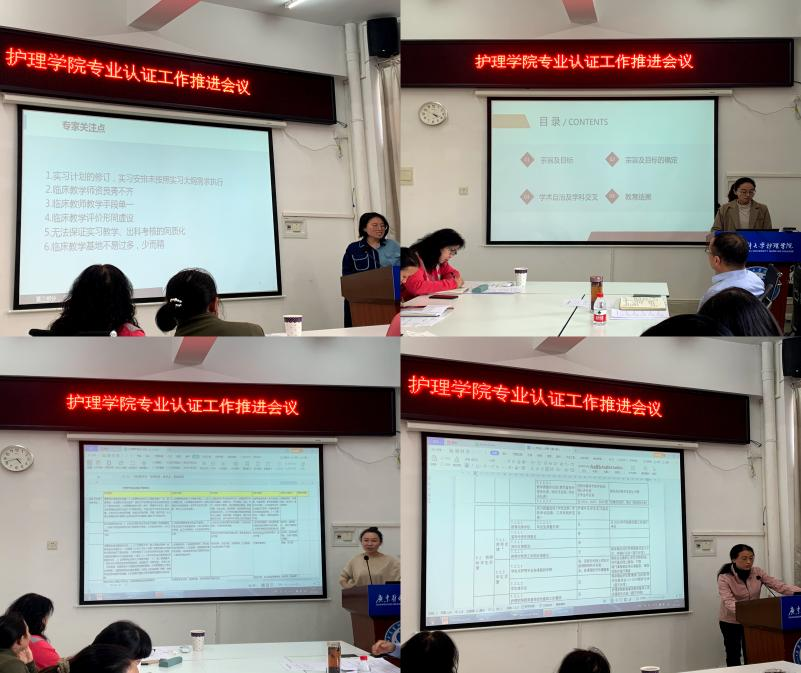会上,护理学专业认证十个小组负责人对照护理学类教学质量国家标准,分别介绍了各组目前工作的开展情况,并对下一步工作计划进行了汇报,同时与会人员对照国家标准逐条分析每一个指标存在的差距、并对工作开展中存在疑难点以及困难解决措施进行了热烈的讨论。
