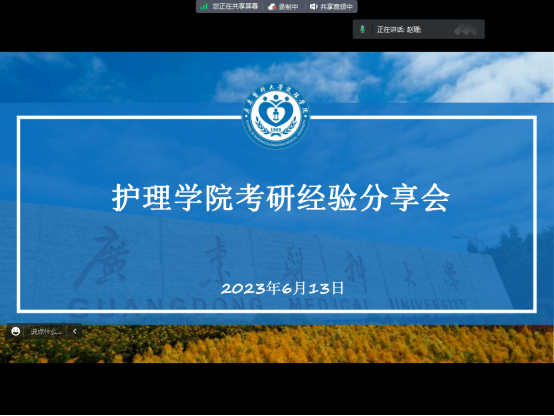 为进一步提高学院学生考研热情,明确报考目标、掌握学习技巧、调整考研心态,2023年6月13日晚,BB贝博艾弗森官方网站在教学楼D3-1教室开展考研经验分享会。参加本次分享会的有护理学院王丽萍副院长,2019级考研成功的毕业生张丹丹、姚琪、盘明霞、林游备、陈欣苗,以及线上线下160多名学生参会,赵珊老师主持。