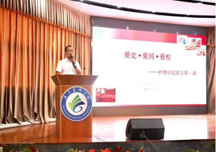 许书记现场领学了习近平总书记在纪念五四运动100周年大会上的讲话精神“对每一个中国人来说,爱国是本分,也是职责,是心之所系、情之所归”。简短的一句话,让现场的同学们都深受触动,爱国是最深沉的情感,奋斗就是最长情的告白。此刻的新生们坚定着自己的医护梦,努力担起青年责任为祖国奋斗。
