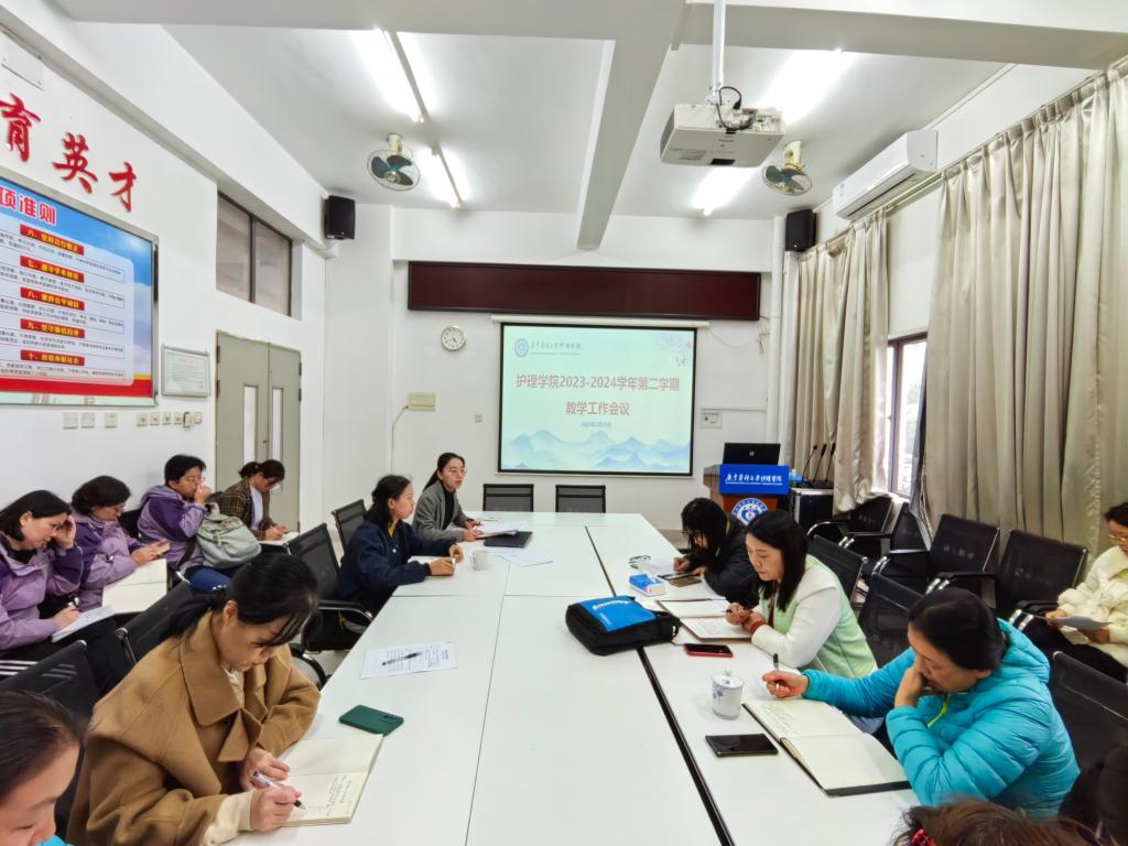 王芳副院长指出,新学期BB贝博艾弗森官方网站要认真学习贯彻学校党委一届十二次全会精神,扎实做好学院本科教育教学审核评估整改工作;以专业认证为契机,深化教学改革,完善教学质量保障体系,加强同质化教学建设;落实以学生为中心的理念,强化“三全育人”,保障人才培养中心工作。随后传达了学校《2024年春季学期本科教学工作方案》的具体要求,指出基于目前护理学专业认证标准教育教学所面临的挑战,结合学院实际布置了本学期及每个月的教学工作重点,强调在课程建设内涵、教学方法改革、成绩评价体系、实验室建设等方面要有创新思路,主动担当作为,在前期基础上努力开创教学发展新局面。