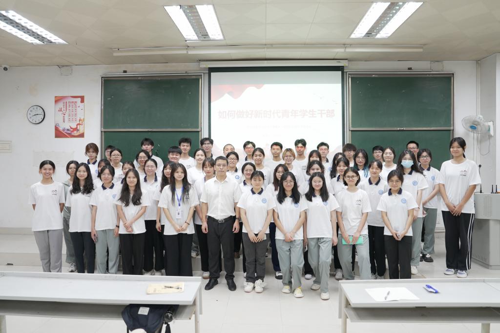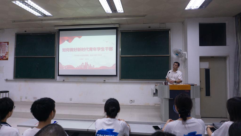 培训会上,王辉群书记首先提出这次培训的目的是希望新任学生干部做有理想、敢担当、能吃苦、肯奋斗的新时代好青年,不断提高自身的工作能力、增强责任意识,时刻服务好同学。接下来,王辉群书记从“ 新质生产力背景下的青年学生担当”和“如何做好新时代青年学生干部”两个方面,为新任学生干部结合未来工作开展作了阐述。