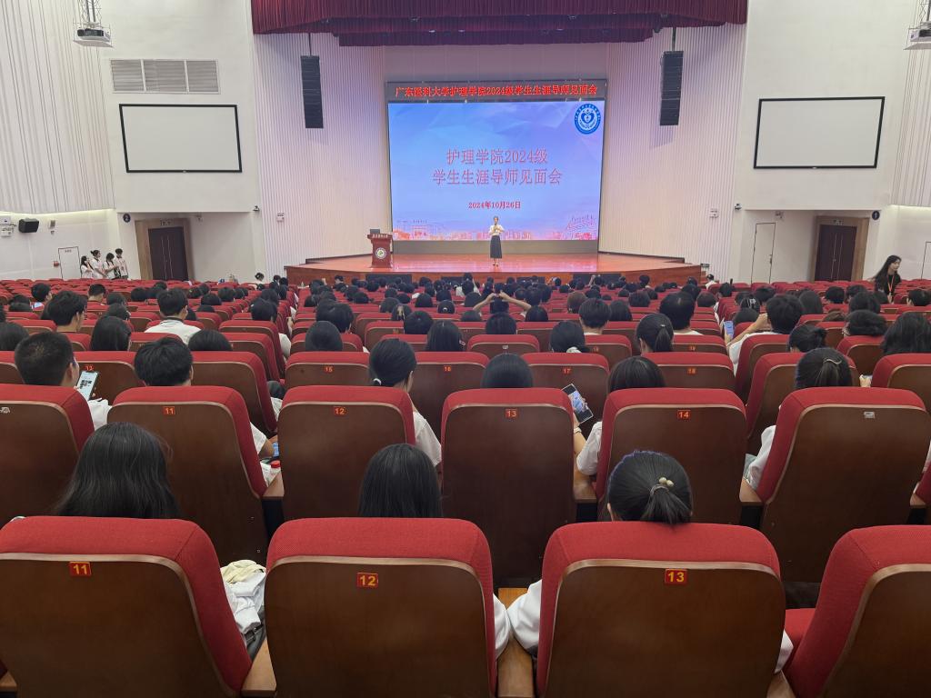 2024级研究生欧阳叶以《我的大学我做主—护理专业考研规划与意义》为题,从护理行业发展趋势、护理考研必要性、如何规划大学生活及考研准备策略等方面鼓励同学们早规划早准备。曾获省十佳“男”丁格尔称号的钟汉平校友则从“感恩”、“信念”、“团队”、“守护”四个关键词分享了他在护理行业一路走来的成长点滴和心得体会。