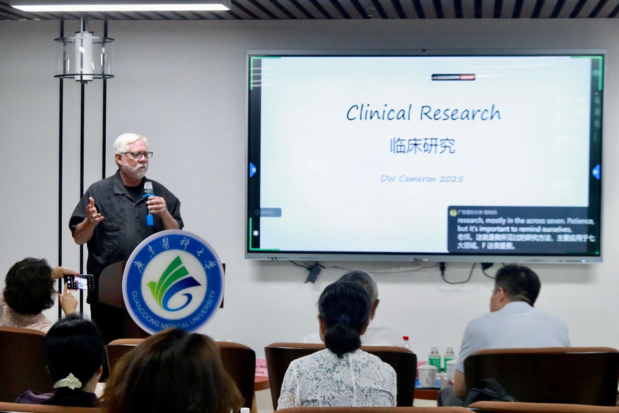 在学术报告环节,Smita Pakhale教授首先做了《 Missing link in COPD Management: Tobacco Dependence Why the Bridge Model™?》的学术报告,她指出COPD治疗中的缺失环节即烟草依赖,并提出了桥梁模型,一种创新的基于证据的烟草依赖管理综合解决方案。接着Donald William Cameron教授做了《Clinical Research》的学术报告,他聚焦医院主导的临床转化研究模式,以药代动力学/药效学为核心方法,通过临床研究单元的实操平台解决药物疗效中的宿主-病原体互作问题,最终提升治疗策略。最后文师吾教授首先做了《Epidemiologic research-interpretation consideration when clinical trials and observational studies are different》的学术报告,文教授从服用叶酸和子痫前期关系研究案例,提出当观察性研究与临床研究结果冲突时,应综合考量时机/剂量/人群等因素。