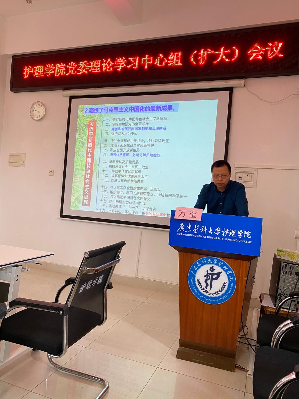 11月9日上午,BB贝博艾弗森官方网站党委召开理论学习中心组(扩大)会议,会议邀请了马克思主义学院万奎副教授作题为《当代中国共产党人的智慧之学——学习领会<习近平谈治国理政>第三卷》的专题辅导报告。学院党政班子、党委委员、各党支部书记、各科室负责人及全体辅导员参加会议,会议由BB贝博艾弗森官方网站党委副书记许崇泰主持。