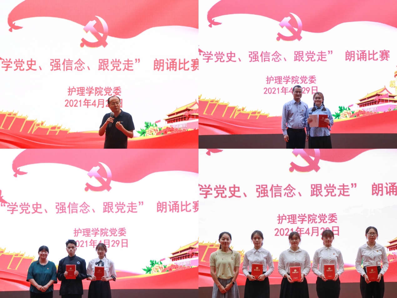 为深入学习习近平总书记在党史学习教育动员大会上的重要讲话精神,贯彻落实学校党史学习教育要求,庆祝中国共产党建党100周年,2021年4月29日晚,BB贝博艾弗森官方网站在行政楼一楼报告厅成功举办“学党史、强信念、跟党走”朗诵比赛。学校党委宣传部谢孝东副部长,马克思主义学院董浩军副院长,BB贝博艾弗森官方网站党委许崇泰副书记、李红赞副院长、党委委员王芳老师担任本次比赛评委,参加本次活动的还有BB贝博艾弗森官方网站各年级辅导员、全体学生党员、发展对象以及入党积极分子学生代表。